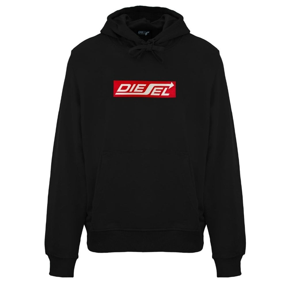 The Diesel S-Ginn-Hood 250111 Off Caviar Hoodie in black is crafted from 100% cotton, delivering exceptional comfort and breathability.