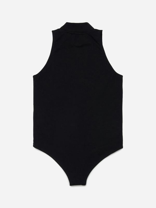This Diesel girls bodysuit comes in black with an embroidered Oval D logo on the front. It has a sleeveless cut and a crew neck for a clean, simple finish. Snap button fastening completes the design.