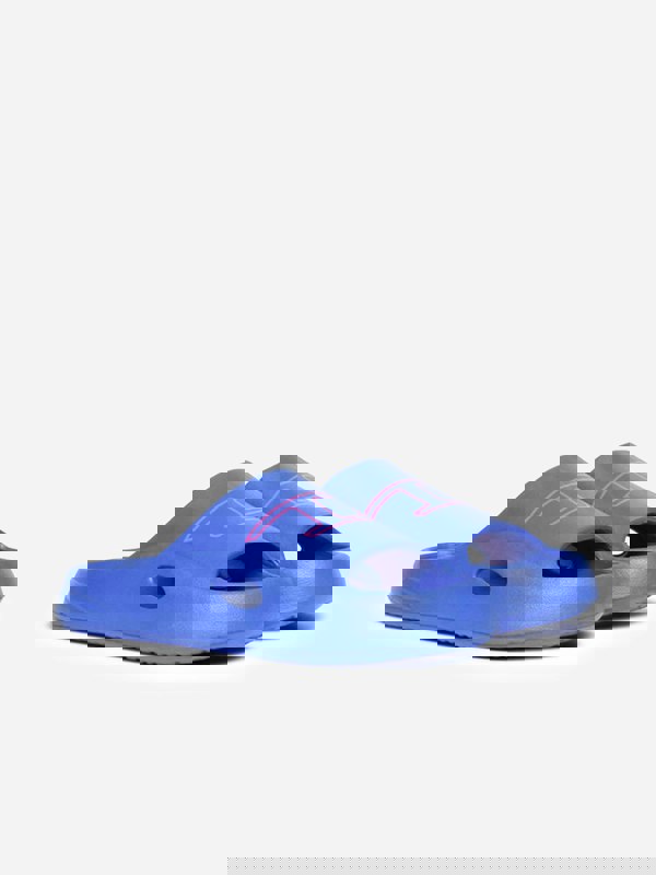 These Diesel kids logo sliders come in blue with a chunky, cut-out profile. They are made from ultra-lightweight, waterproof EVA for a clean, practical finish. A supersized D logo print sits across the strap, keeping the look bold and instantly recognisable.