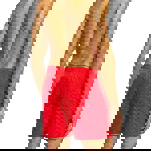 Diesel BMBX-Nico swim shorts in red with a printed design and a pull-on construction. The waistband combines an elasticated finish with a drawstring for adjustment. Practical pocketing includes two side pockets and a single back pocket.