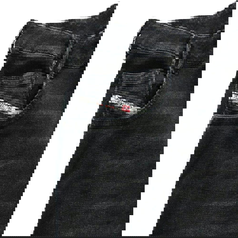 These Diesel D-Yennox jeans are made from stretch denim with a faded black finish. The design combines a plain base with patch detailing and a tapered leg shape. A button fastening and zip fly keep the front closure clean and practical.