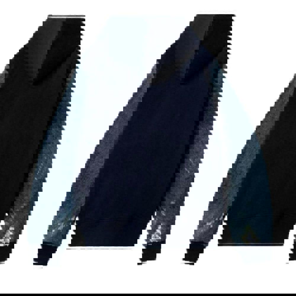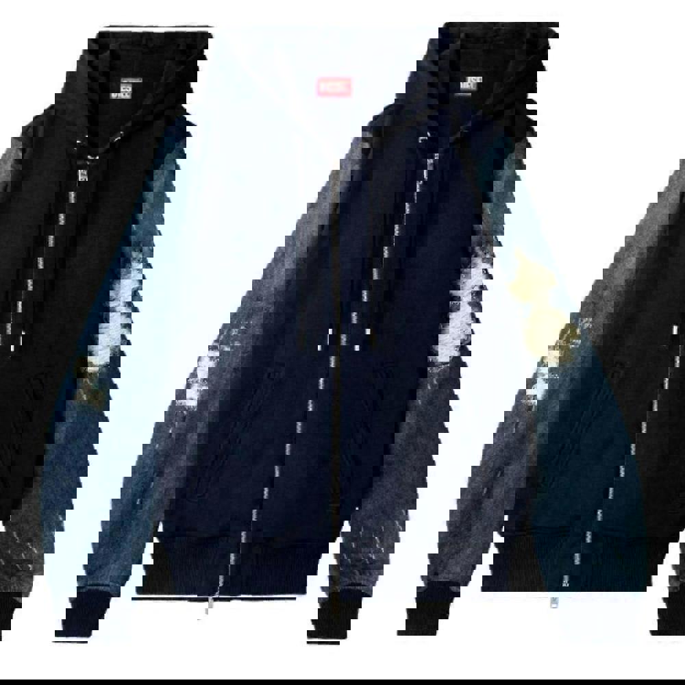 This Diesel men’s jacket comes in blue with a contrast look and ripped detailing. It is made from 100% polyester and finished with long denim sleeves. A standing collar and sew-on hood with drawcord add structure, while the full zip fastening keeps the front clean and easy to wear.