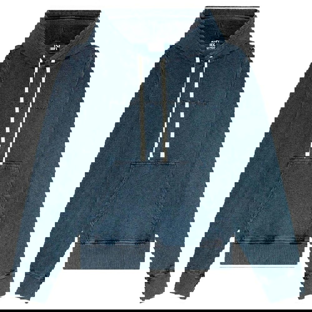 Diesel men’s hoodie in dark grey, made from 100% cotton with a printed design. The hooded neckline is finished with a drawstring and sew-on hood construction, while the pull-over style keeps the look clean and simple. Long sleeves are paired with elasticated cuffs, and an elasticated hem adds a neat finish.