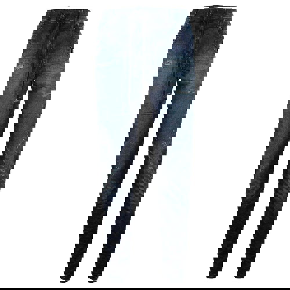 These Diesel Krooley CB NE jeans come in blue with a plain finish and ripped detailing. Made from a cotton-rich blend with added polyester and elastane, they use stretch fabric for ease of movement. The joggers style silhouette is paired with belt loops for styling with a belt.