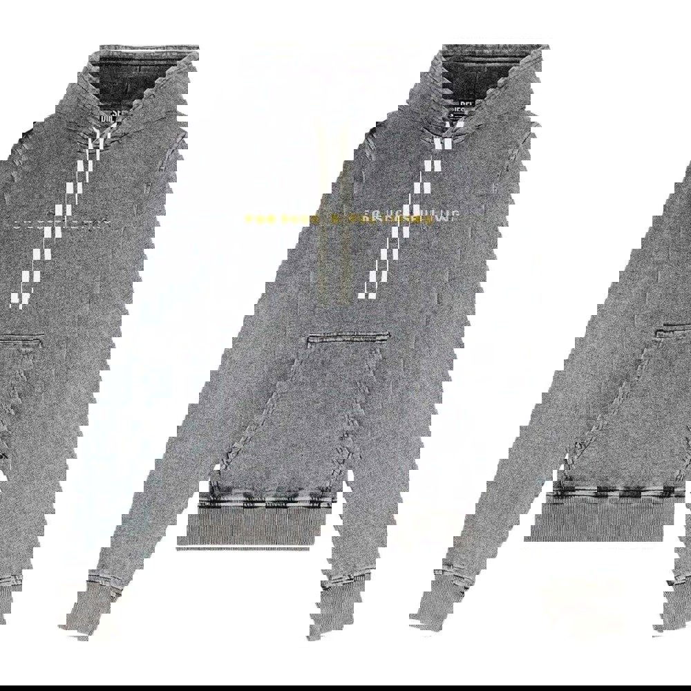 Diesel mens logo hoodie in grey faded, made from 100% cotton. The hooded neckline is finished with a drawstring and sew-on hood detailing, while the pull over fastening keeps the look clean and simple. Long sleeves and an elasticated cuff and hem give a neat outline for everyday wear.