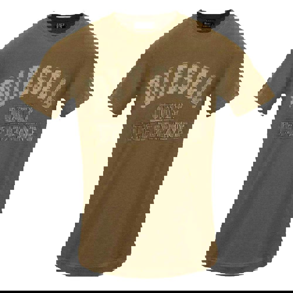 This Diesel men’s t-shirt comes in brown with a monotone logo and text design. Made from 100% cotton, it has a crew neckline and short sleeves for a clean, casual profile. The relaxed fit keeps the shape easy to wear on its own or as a base layer.
