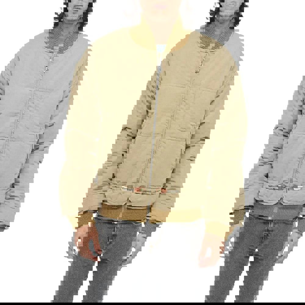 Long sleeves and a ribbed, contrast cuff keep the look clean and structured. The hem combines ribbing with contrast detailing and cord lock adjusters. Storage is provided by two side pockets and two inseam pockets, with stud fastening.