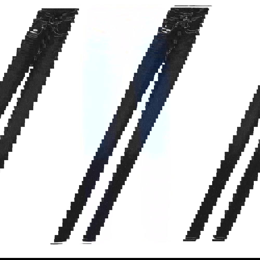 These Diesel Sleenker jeans are made from stretch denim with a plain finish. The fabric blend combines 98% cotton with 2% elastane for a close, skinny fit. Finished in dark blue, they suit everyday wear with shirts, knitwear, or casual outerwear.