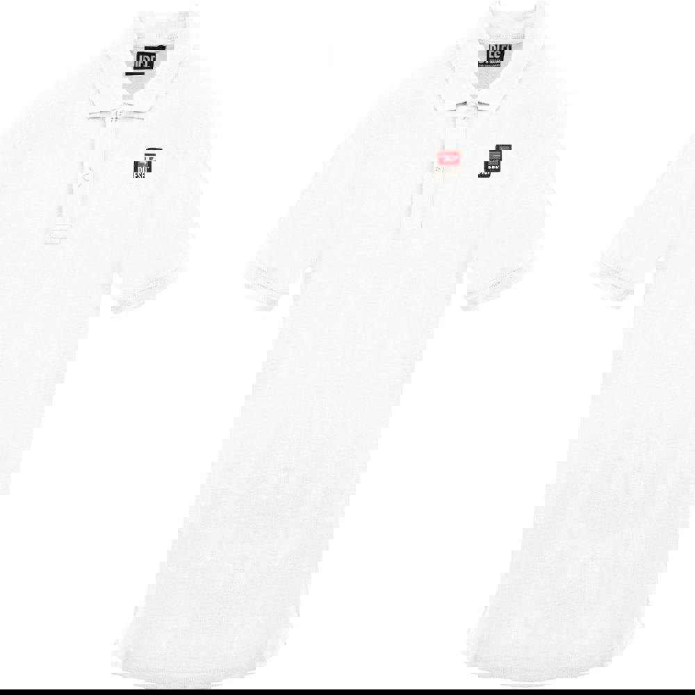 This Diesel polo shirt comes in off white with a plain finish and a small logo patch. Made from 100% cotton, it has a short-sleeved cut and a turn down collar for a classic polo profile. The front uses a two-button placket with a button fastening and pull over style for easy wear.