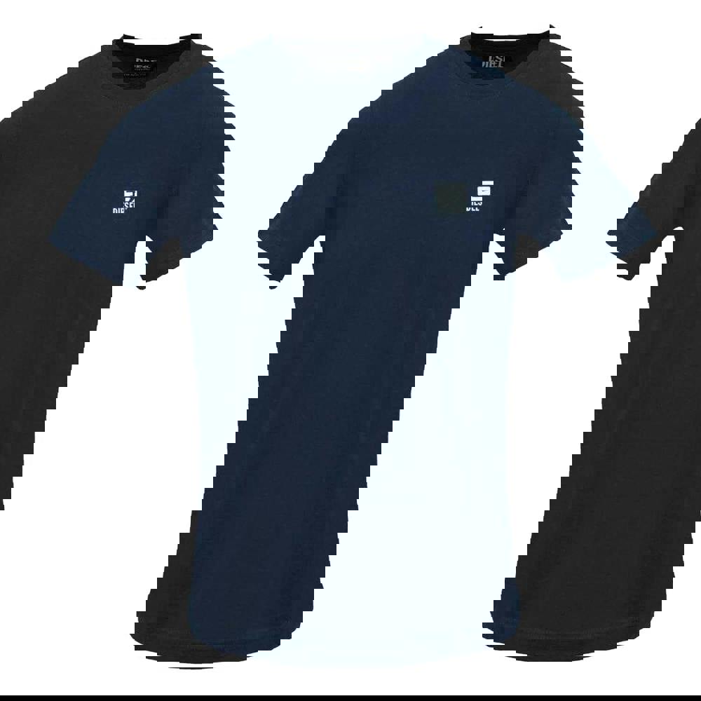 This Diesel T-shirt comes in Total Eclipse navy with a clean, everyday profile. Made from 100% cotton, it is finished with a crew neckline and short sleeves for a classic shape. A logo patch detail adds a branded accent while keeping the overall look simple and easy to wear.