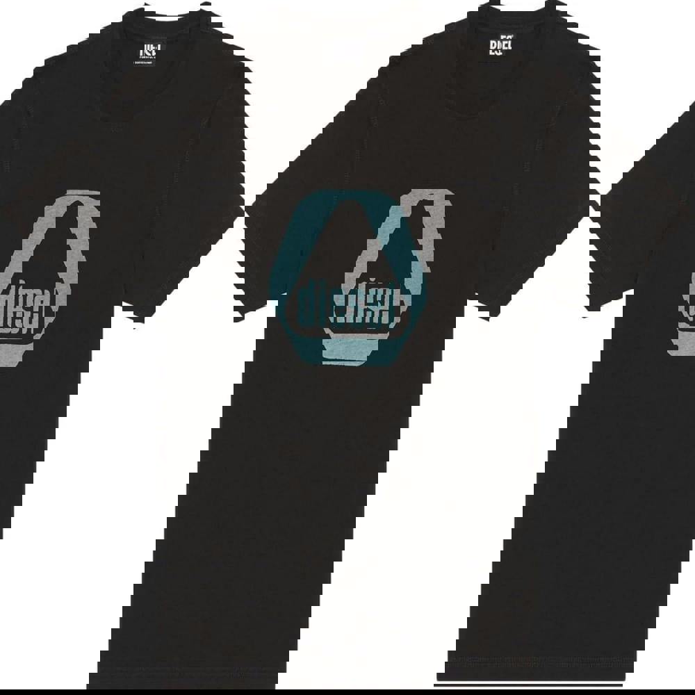 This Diesel men’s T-shirt is made from 100% cotton and finished in black. It has a crew neckline and short sleeves for a clean, classic silhouette. The design includes a logo and triangle detail, with a regular fit for straightforward everyday wear.