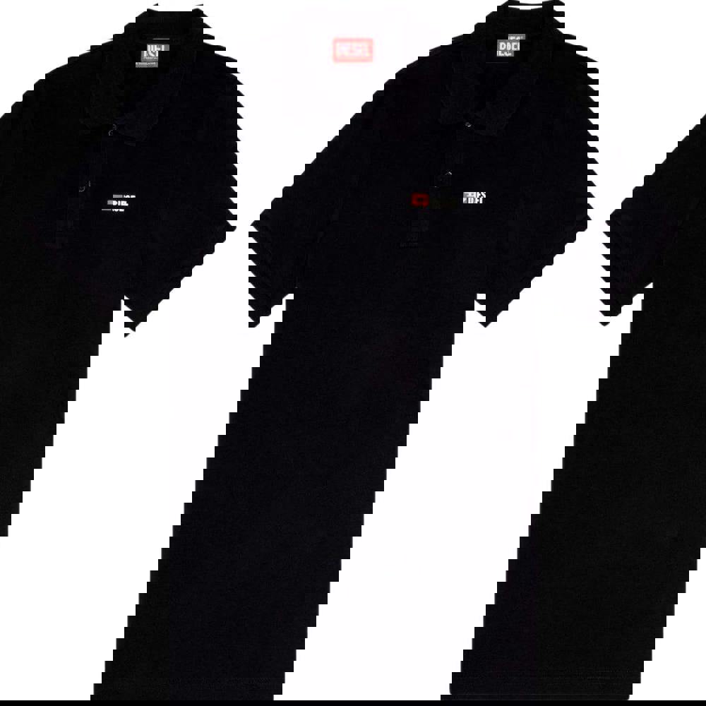 This men’s polo shirt from Diesel comes in black with a plain finish and logo detailing. It is made from 100% cotton and cut to a regular fit. The design includes short sleeves and a turn-down collar for a classic polo silhouette.