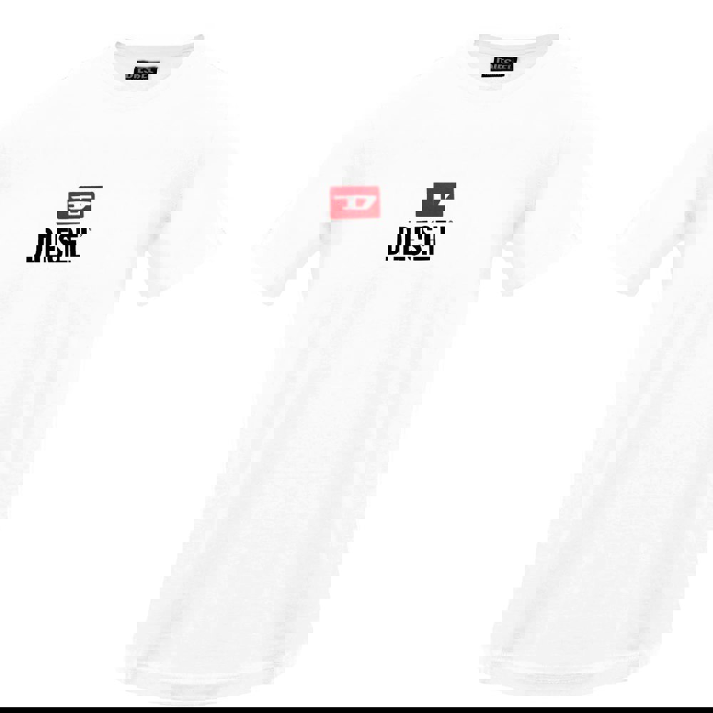 The Diesel T-Just-Small-New D Logo Bright White T-Shirt offers a crisp, clean look with its bright white color and iconic Diesel D logo, making it a versatile staple for any wardrobe.