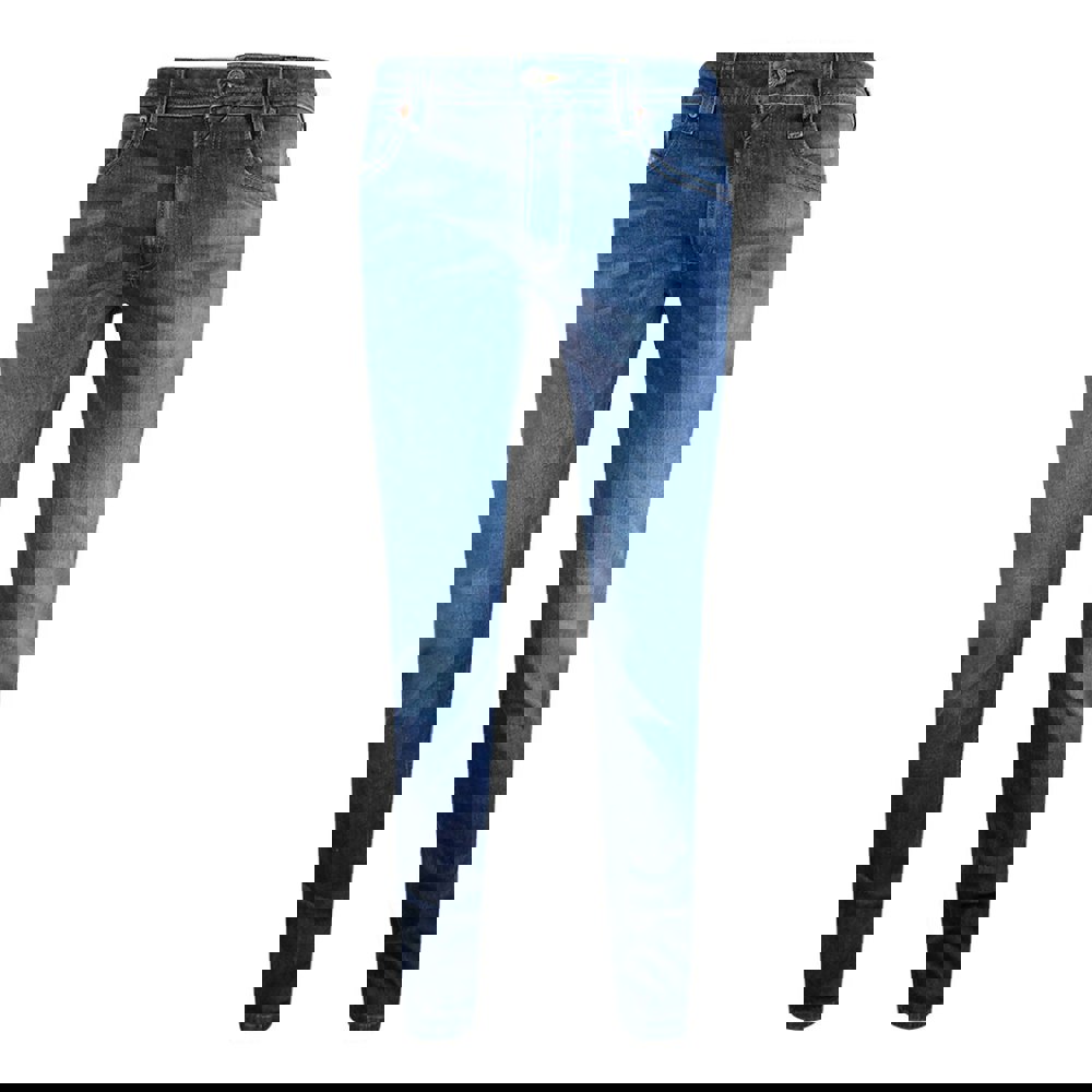 The distinctive brown badge and blue denim finish add a unique touch, making these pants versatile for casual or smart-casual occasions.