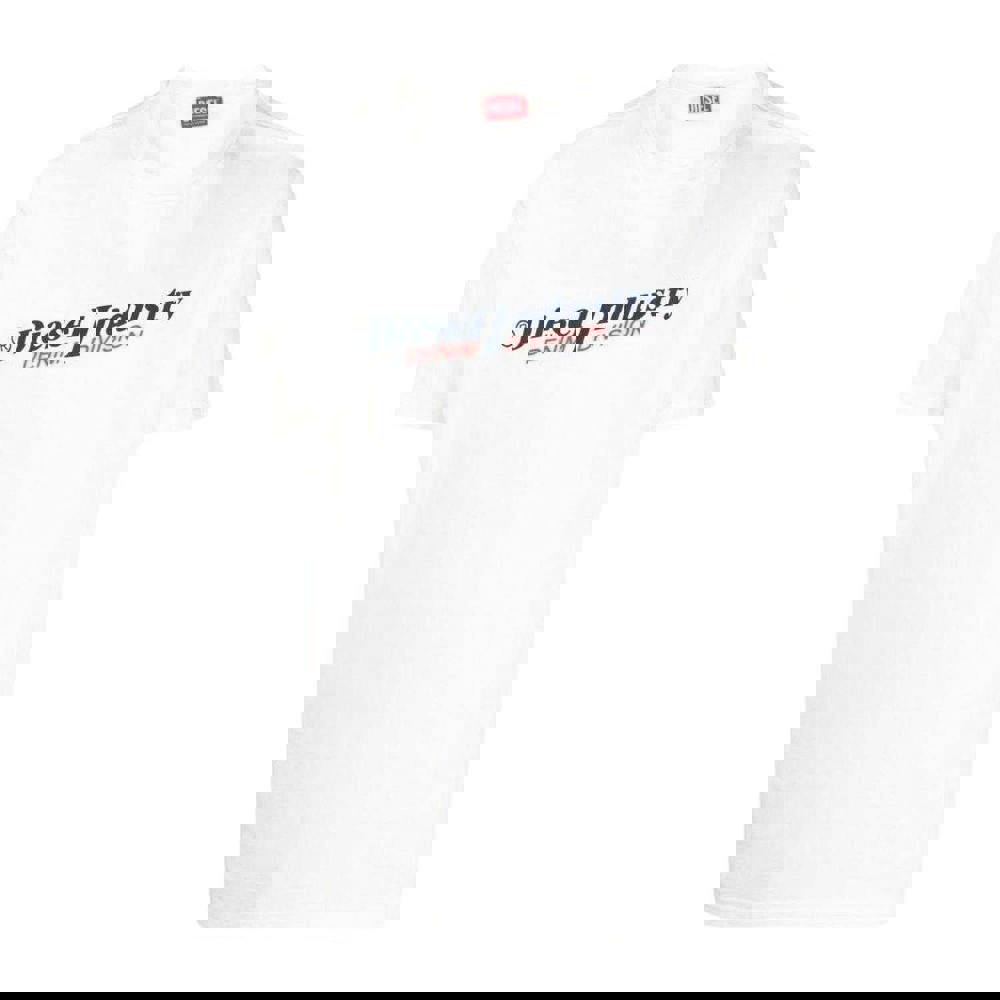 This Diesel unisex adult T-shirt comes in white with a printed Industry Denim Division logo design. Made from 100% cotton, it has a crew neck and short sleeves for a clean, casual finish. The regular fit keeps the silhouette straightforward and easy to wear on its own or layered.