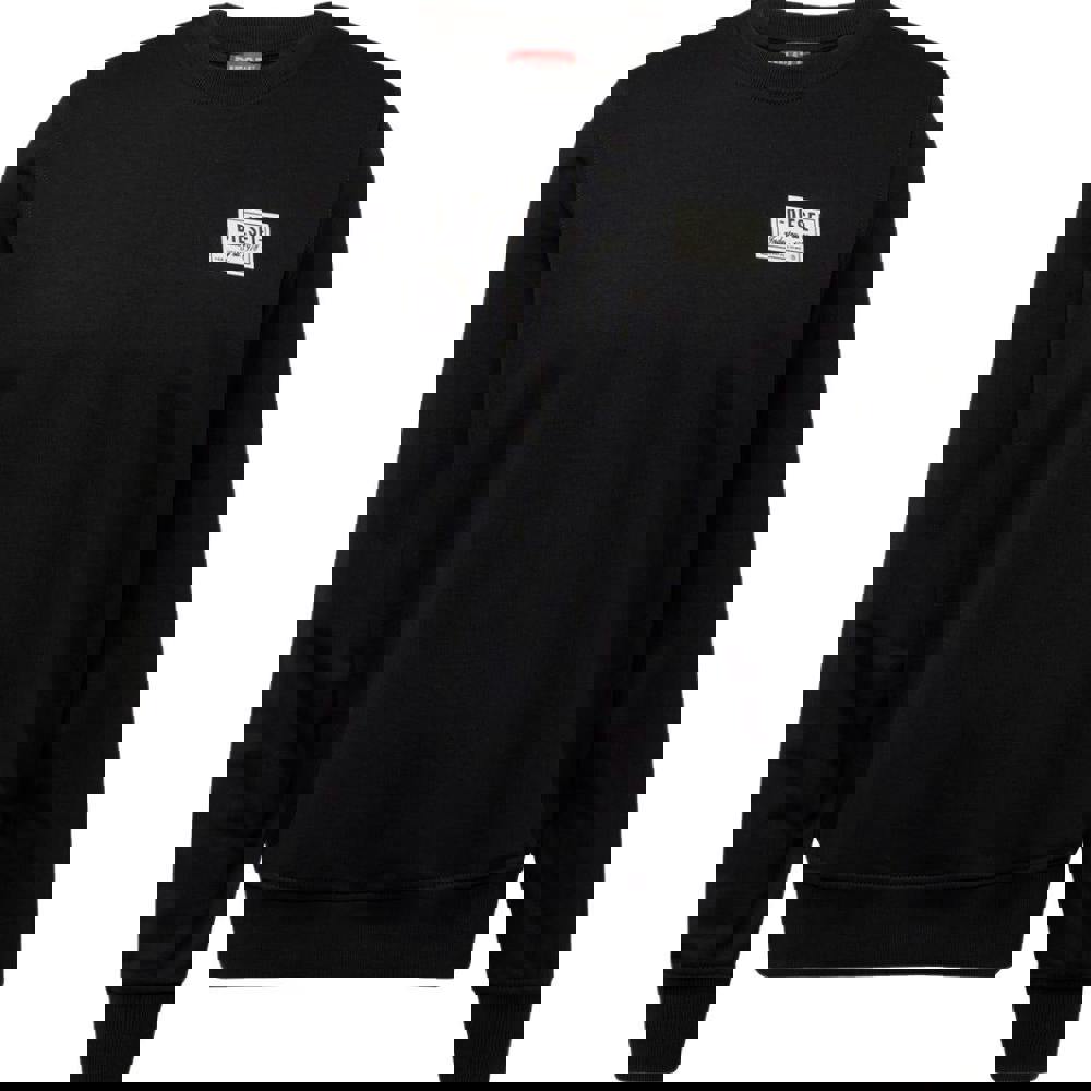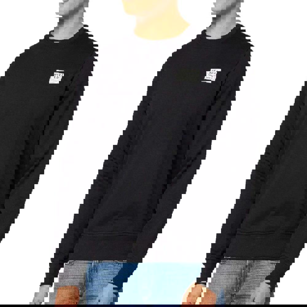 This unisex Diesel sweatshirt comes in black with a printed patch logo design. It is made from a cotton and polyester blend and finished with a crew neckline.
