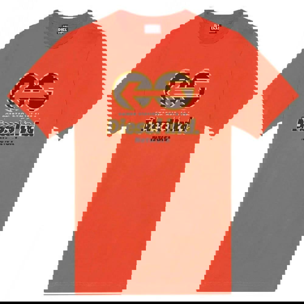 This unisex Diesel Power Station logo T-shirt comes in orange and black with a printed text logo design. It is made from 100% cotton and finished with a crew neckline and short sleeves. The regular fit keeps the silhouette clean and easy to wear for everyday casual outfits.