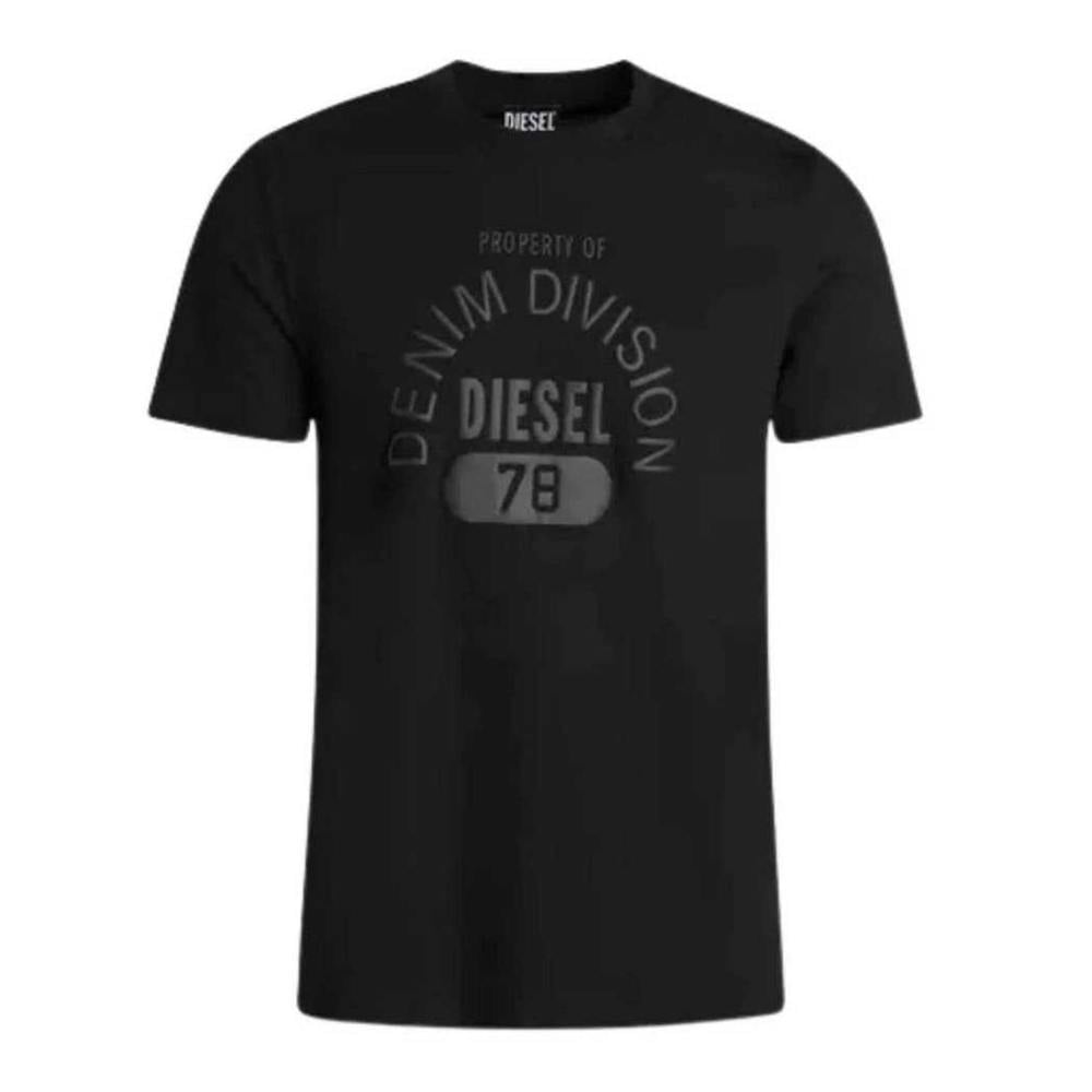 This Diesel unisex T-shirt is made from 100% cotton and comes in black. It has a crew neck and short sleeves, finished with a logo and text design.