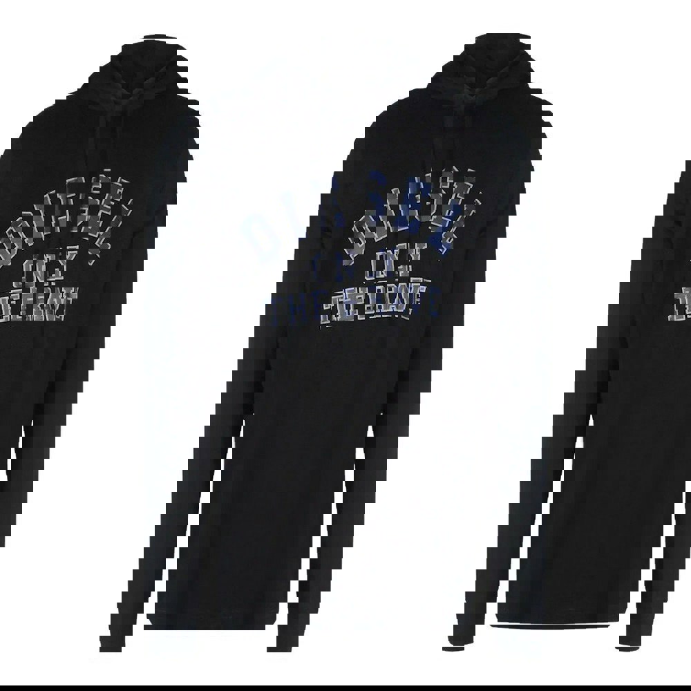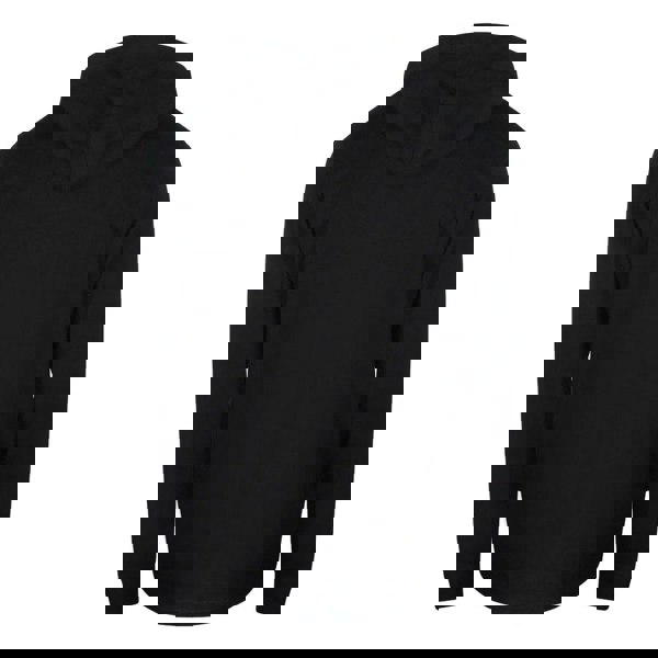 This unisex hoodie is finished in black with a logo and text design. It has a hooded neckline with a sew-on hood and an adjustable drawstring for a secure feel.