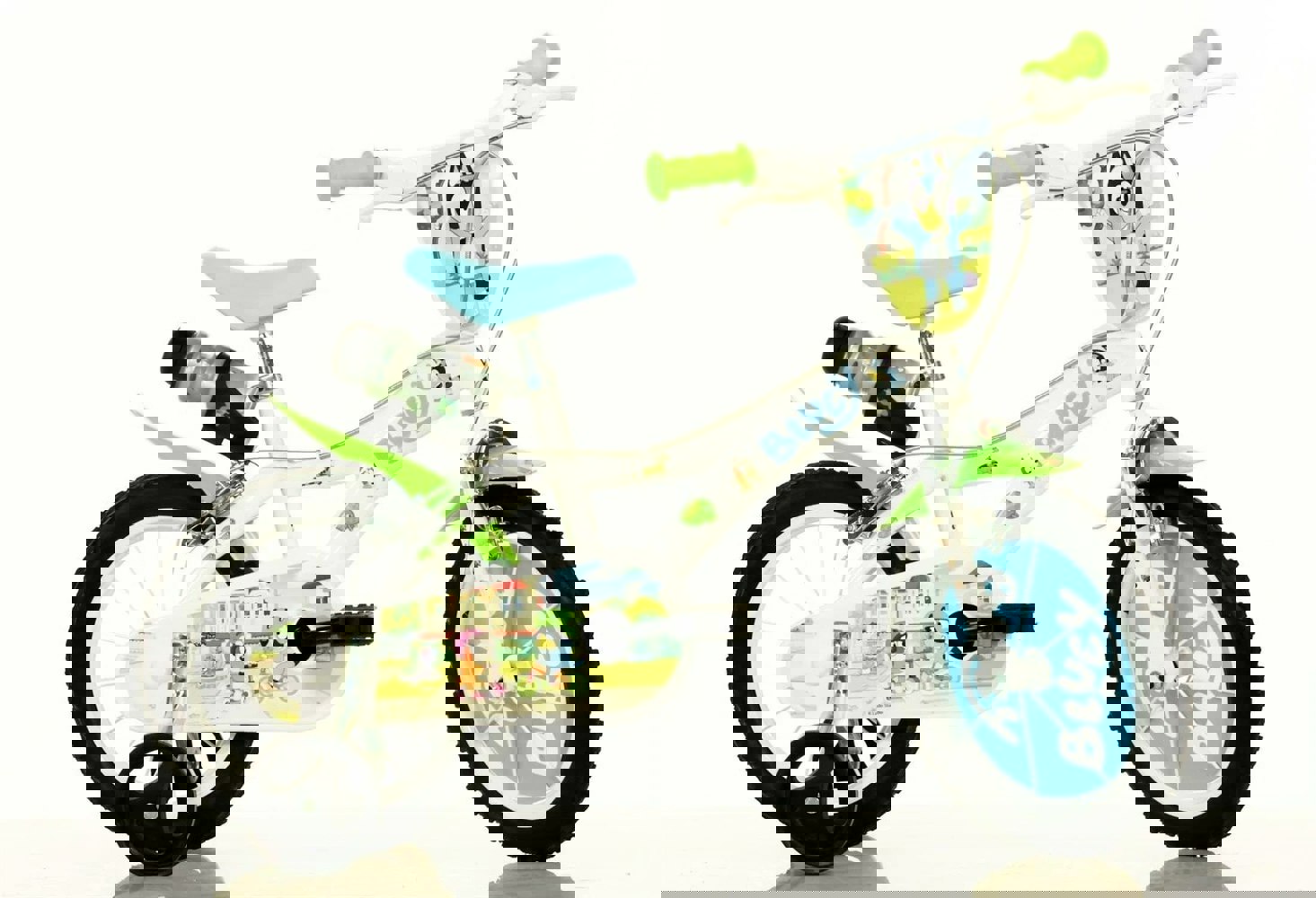 The Dino Bluey 14in Kids Bike is the perfect first bike for little riders who love Bluey! Designed with a sturdy yet lightweight frame, this bike offers excellent stability and easy handling, making it ideal for kids learning to ride