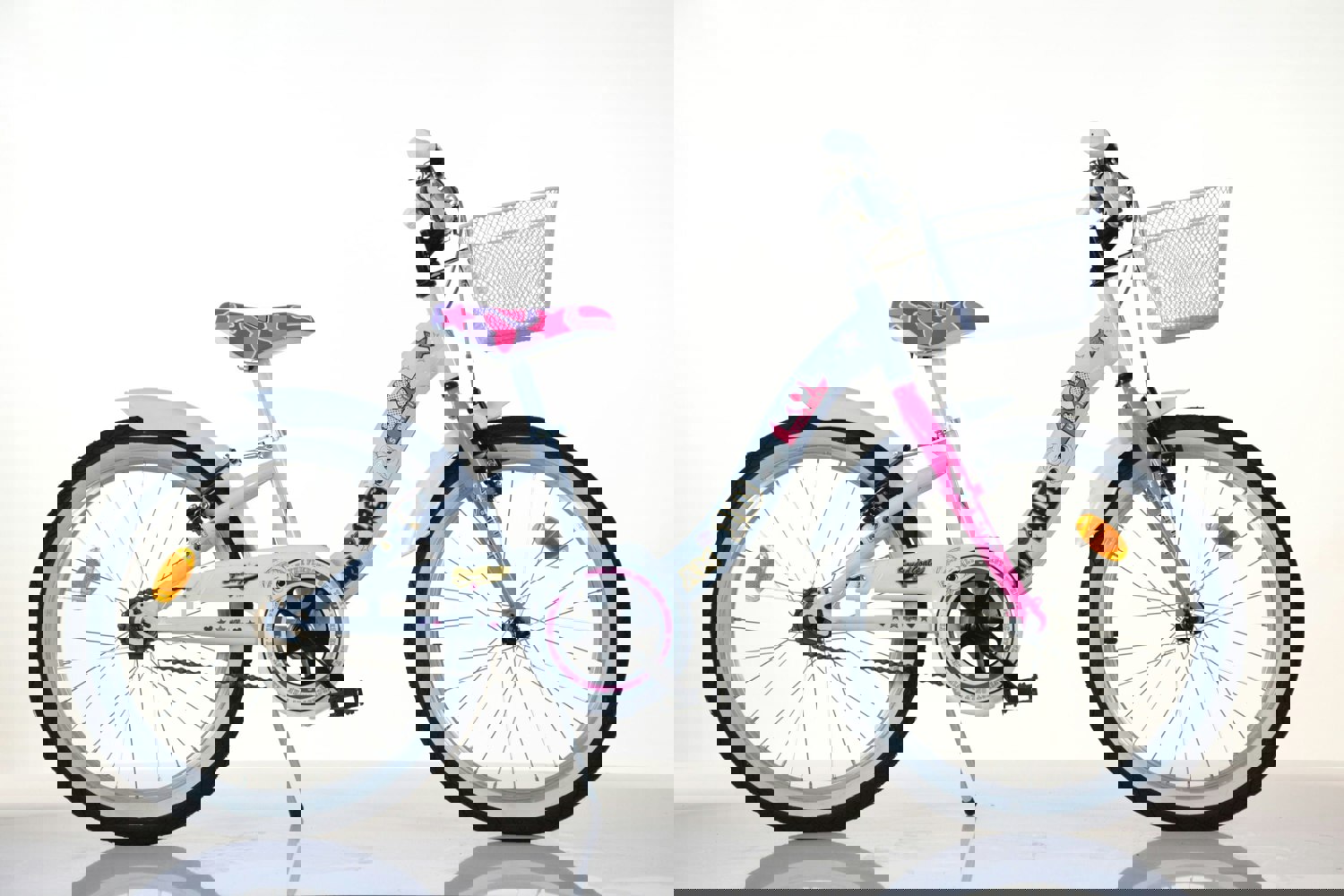 This beautiful bicycle also comes with an adjustable saddle and handlebars, and a front basket