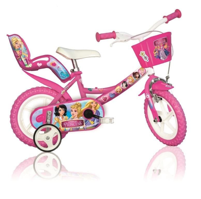 The cute Princess-themed bicycle comes with front brakes, stabilisers, front and rear mudguard, doll carrier and a front basket