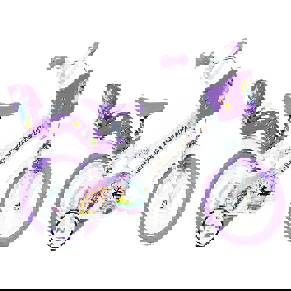 The Unicorn Academy licensed bicycle comes with a front brake and a fixed rear wheel, so when the pedalling stops, the bike comes to a halt. It features 12 inch MAG wheels and puncture-proof EVA tyres, and also comes with removable stabilisers.