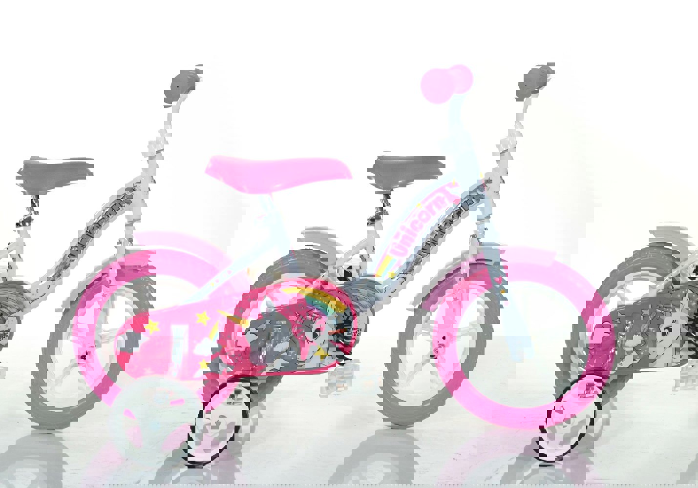 It features fun and colourful unicorn decals, MAG wheels and puncture-proof EVA tyres