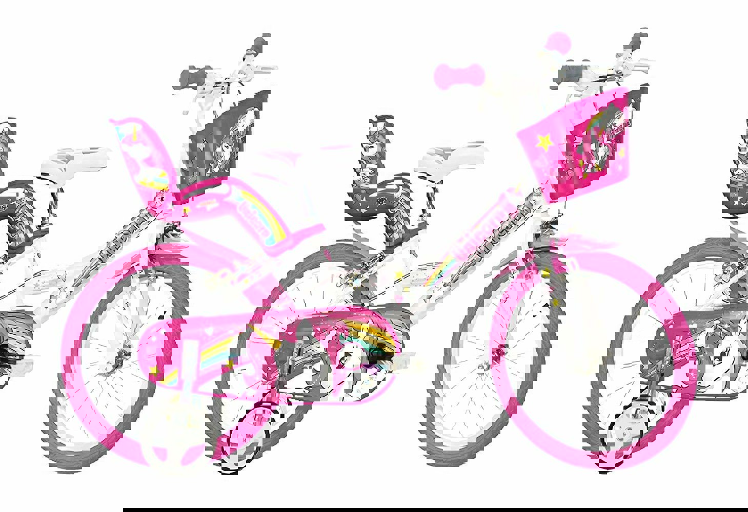 This bike also has an adjustable saddle, handlebars, A doll carrier and a basket on the front and also has awesome Unicorn Decals