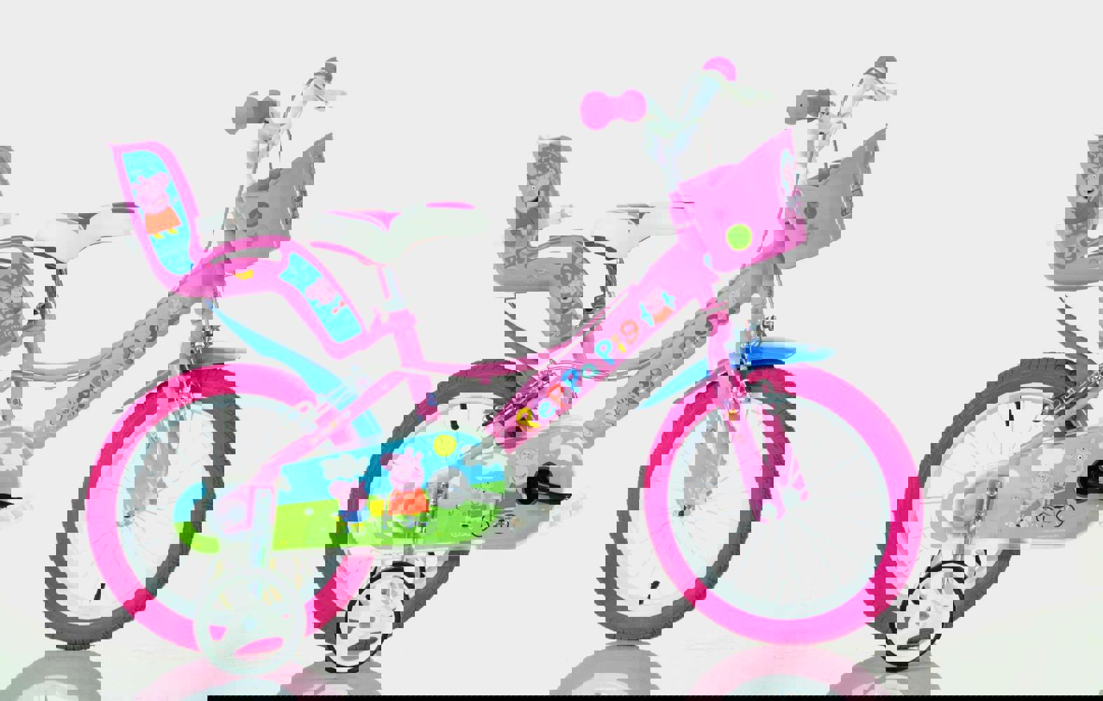 This Peppa Pig Licensed 16" Bicycle Comes With Front And Rear Brakes, Freewheeling Rear Wheel, 16" Spoked Wheels And Mudguards And Also Comes With A Rear Doll Carrier And A Front Basket. This 16" Peppa Pig Bicycle Also Comes With An Adjustable Saddle And Handlebars And Also Comes With Removable Stabilisers.
