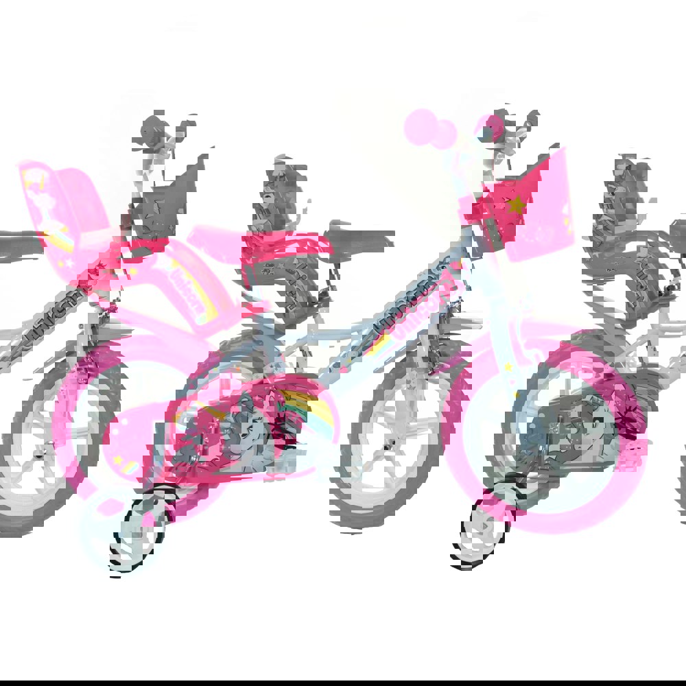 Designed to build confidence, the Dino Bikes Unicorn 12″ Bicycle comes with removable stabilisers, offering crucial balance support in the early stages. A front caliper brake provides stopping power, and the fully enclosed chainguard protects little legs and clothes. The saddle height is adjustable, ensuring the bike can grow with the child for lasting magical adventures.