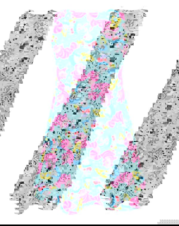 This officially licensed skater dress features an all-over print graphic showcasing characters from Alice in Wonderland