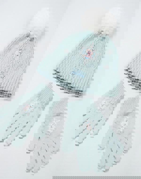 Keep your little one warm this winter with the Disney Frozen Elsa Girls Light Blue Beanie and Gloves Set