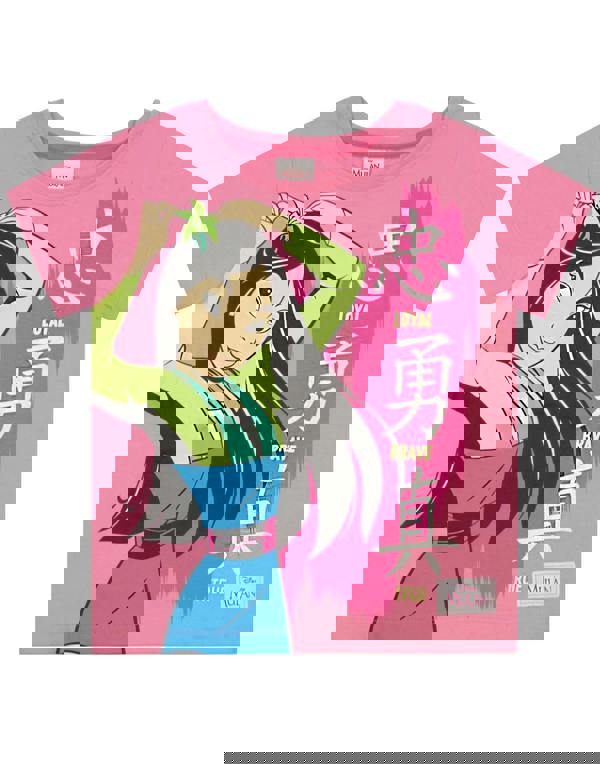 A detailed print of the brave and courageous Mulan is featured on the right side of the pink tee