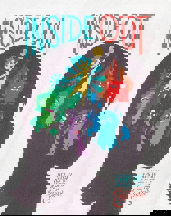 Everyday is full of emotions! This official Inside Out girl's sublimation t-shirt is full of emotions too, featuring the five key emotional manifestations: Joy, Sadness, Anger, Fear, and Disgust as seen within the Disney movie