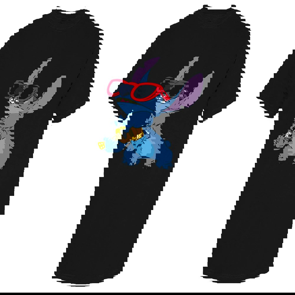 An official licensed Disney T-Shirt featuring the Lilo & Stitch Stitch Guitar design motif. This high quality T-Shirt is available in a black colourway. Comes in a wide range of sizes from Small through XX-Large, subject to availability.