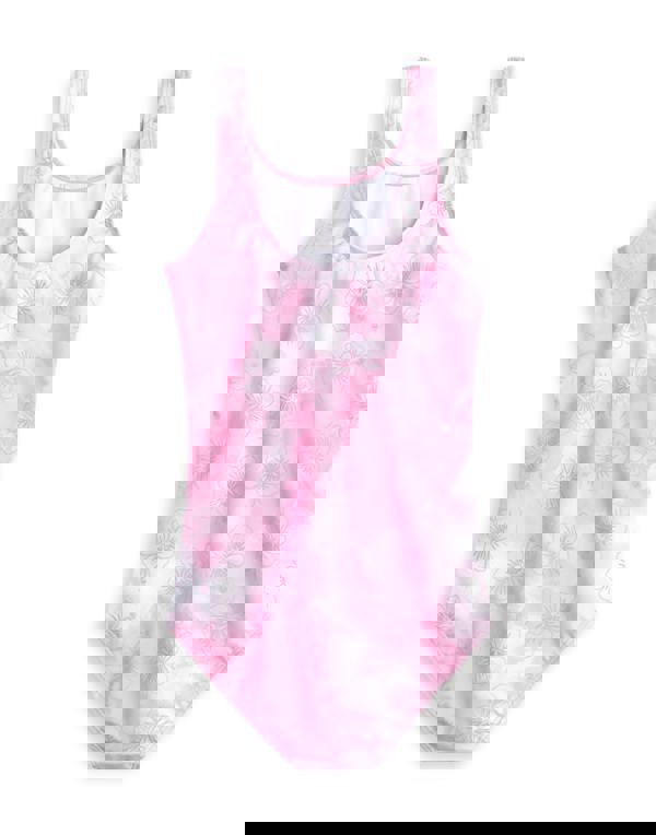 This one-piece swimming costume features the beloved character Angel, prominently displayed alongside a vibrant floral pattern, making it an engaging option for beach outings and pool days