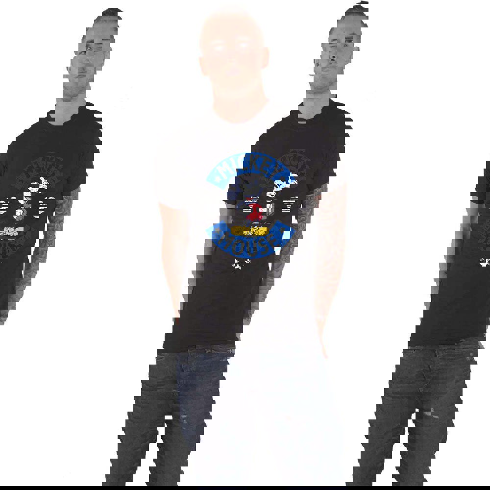An official licensed Disney Unisex T-Shirt featuring the 'Mickey Mouse & Stars' design motif. This high quality T-Shirt is available in a black colourway. High quality soft-style cotton Unisex T-Shirt featuring front printing. Comes in a wide range of sizes from Small through XX-Large, subject to availability.