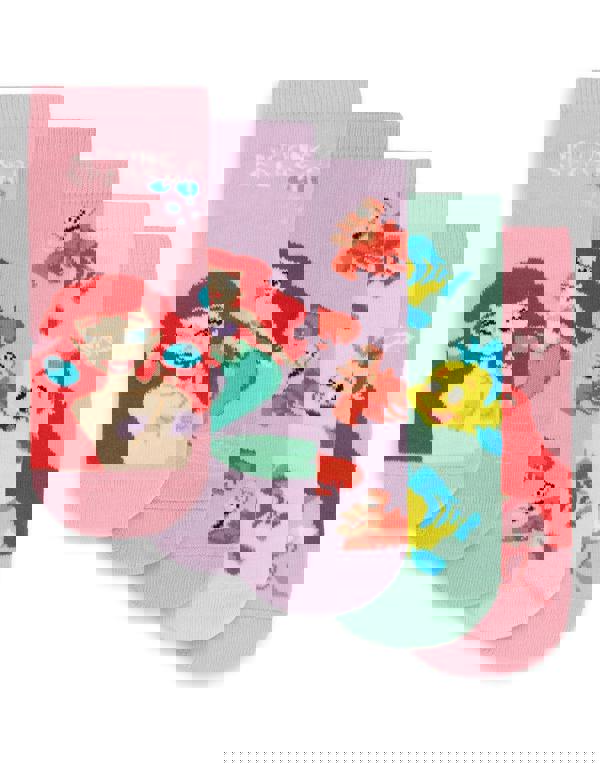 Introducing the Disney The Little Mermaid Girls Calf Socks Set of 5, featuring vibrant designs of Ariel, Flounder, and Sebastian