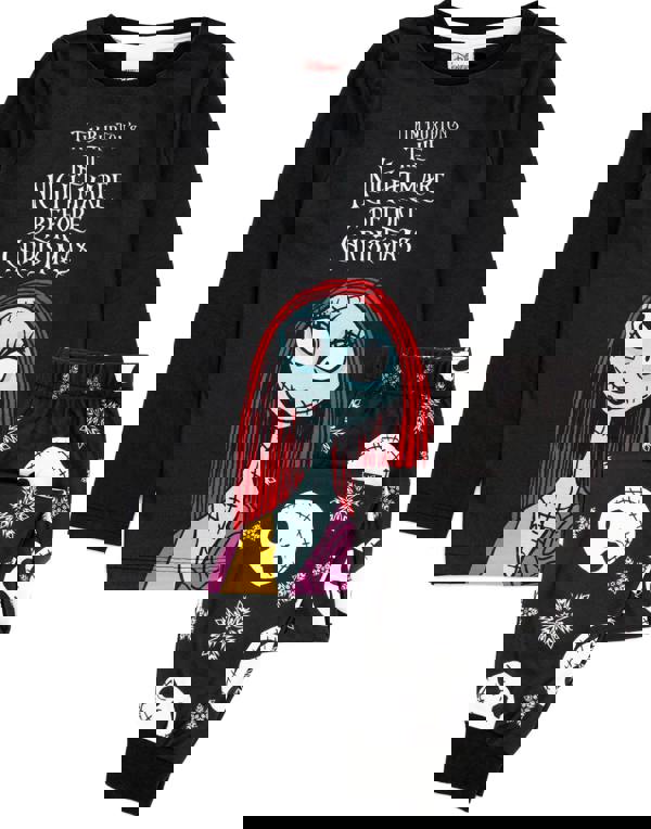 Paired perfectly with black cuffed trousers featuring a festive snowflake and Jack Skellington face all-over print, the matching set is a must-have