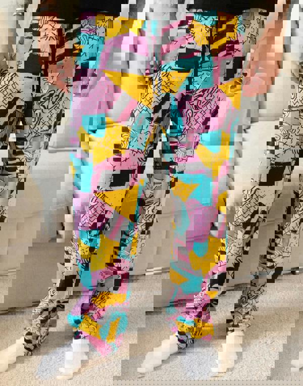 Featuring a stunning all-over print of Sally's iconic patchwork design, these multicoloured wide-leg bottoms are perfect for both lounging and showing off your love for the film.