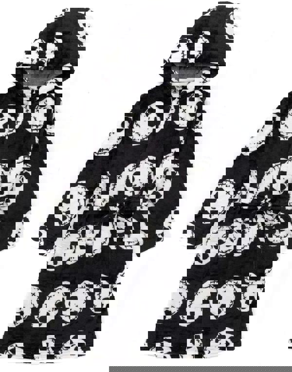 Wrap up comfy and cosy for a movie night with the Pumpkin King of Halloween Town! This Tim Burton Nightmare Before Christmas dressing gown for children and teens comes in black and white, featuring a Jack Skellington all over print, making a must-have costume outfit for parties, Halloween, and bedtime
