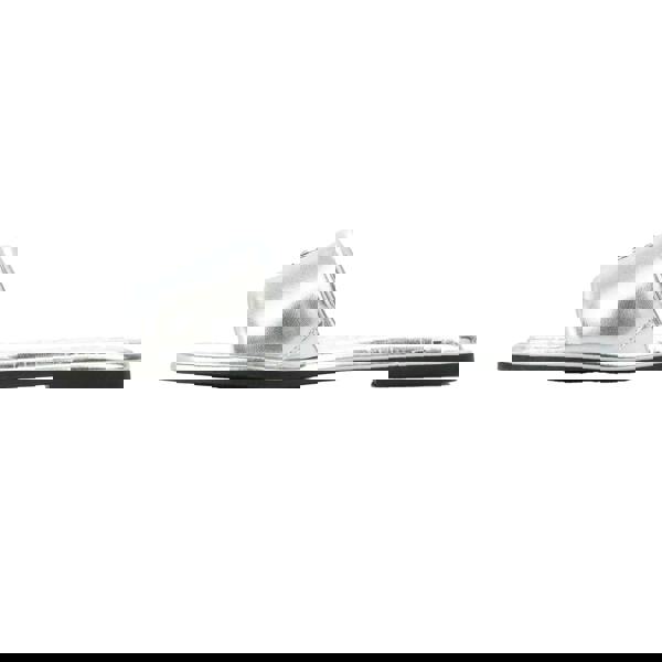 These DKNY Bunnie flat sliders come in a silver finish with a slip-on design for easy wear. The partially open toe creates a relaxed profile, while the emblem and logo detailing adds a distinctive branded look.