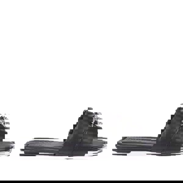 These DKNY Holden Charm flat sliders offer a simple slip-on style with an open toe. Finished in black, the design includes silver detailing and a tonal logo for a clean, branded look.