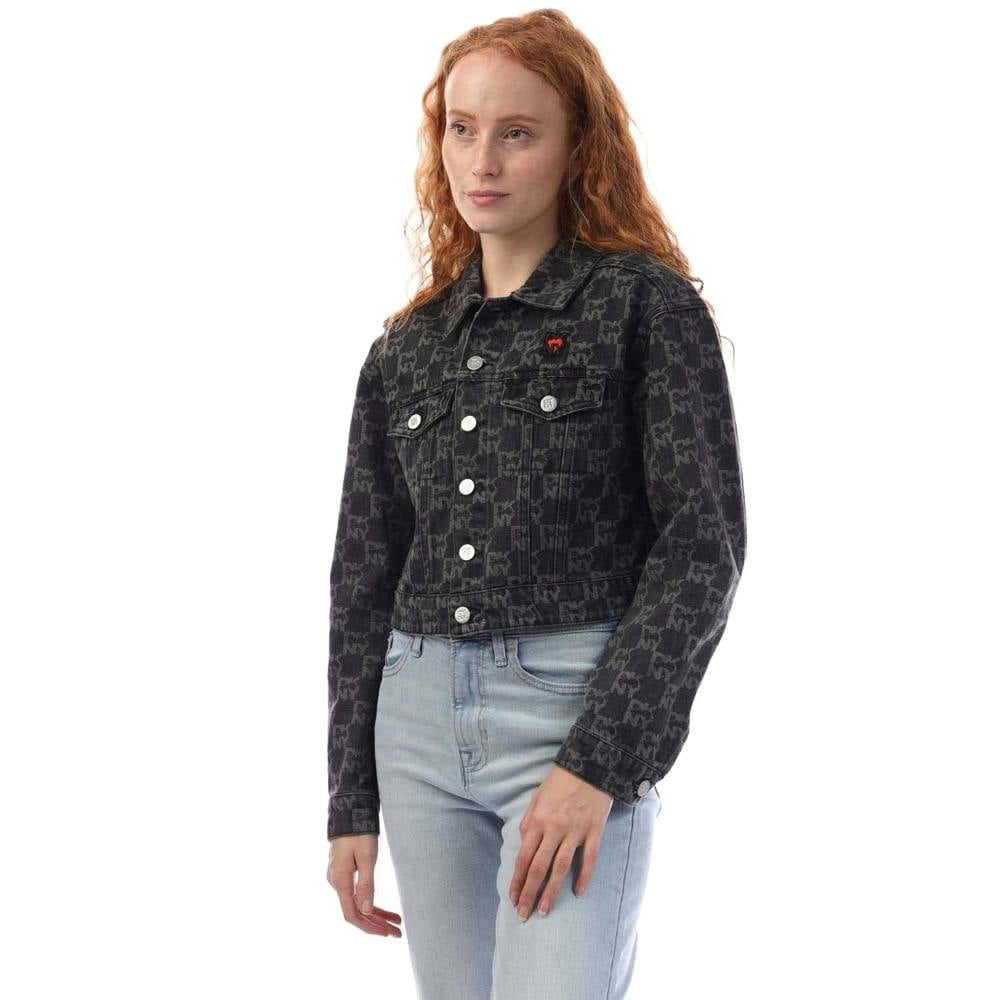 Cut from 100% cotton, this DKNY denim jacket comes in grey with a repeat logo design. It has a regular fit and a classic turn down collar, finished with a button fastening through the front.