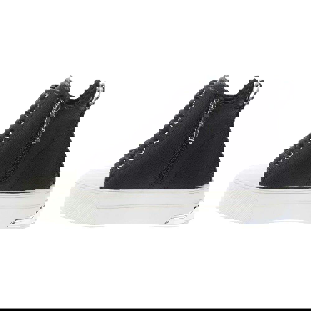 Comfort-focused padding at the collar and tongue is paired with practical fastening options. Lace-up styling allows an adjustable feel, while a side zip offers quick access without removing the laces. Underfoot, rubber grips add traction to the platform sole.