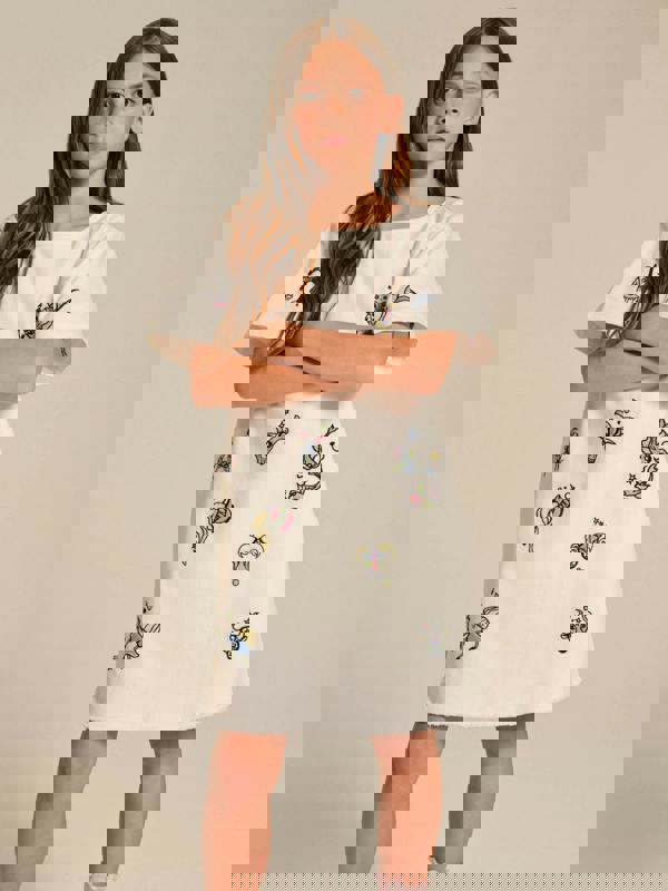 Everyday dressing gets a playful update with the Girls Kiki Star Signs T-Shirt Dress in white from DL1961. Cut in a classic T-shirt dress shape, it brings an easy, throw-on feel while keeping the look distinctive with an all-over star signs print.