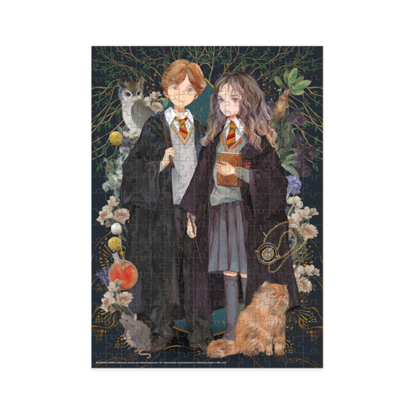 With 300 pieces and made from sturdy cardboard, this Harry Potter Wizarding World licensed jigsaw is made for puzzling beginners. It has soft touch pieces and once completed, will measure 39 x 28 cm and pictures Hermione and Ronald, with Ronald standing next to his owl Pig and Hermione with her cat, Crookshanks. The background of the puzzle has a floral decoration. Unleash all the magic of this puzzle and improve your building skills – A must for all Harry Potter, Hermione and Ronald, fans young and old. Suits age 8 years +.