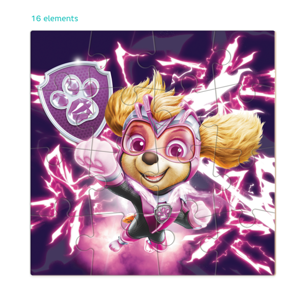 Ideal for beginners, this Paw Patrol jigsaw puzzle has 16 pieces made from rigid cardboard which is easy to handle for small hands It features Skye in a futuristic setting and will encourage your child learn new words, invent stories, and most importantly, learn about the amazing adventures of the Paw Patrol. Once complete, with puzzle will measures 22 x 22 cm. Suits ages 3 years +.