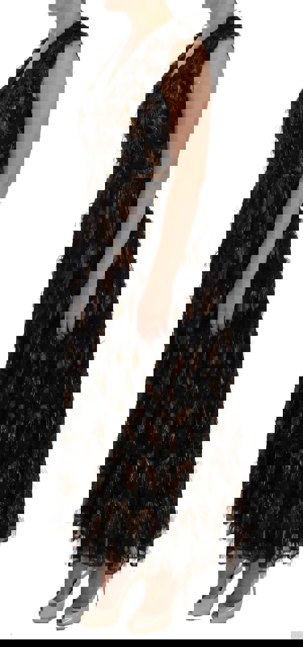 Dolce & Gabbana Fringed Geometric Print Dress - Black & Gold